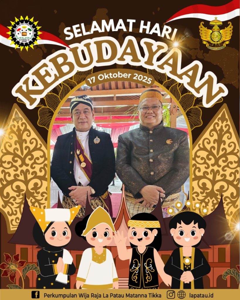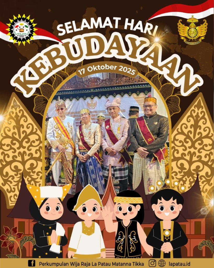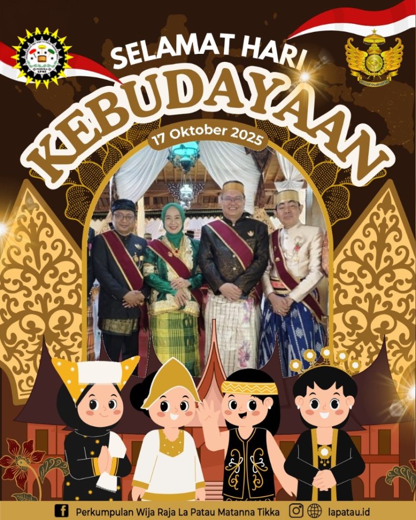 Pengurus Perkumpulan Wija Raja La Patau Matanna Tikka [PERWIRA LPMT] mengucapkan “Selamat memperingati Hari Kebudayaan Nasional, 17 Oktober 2025”,