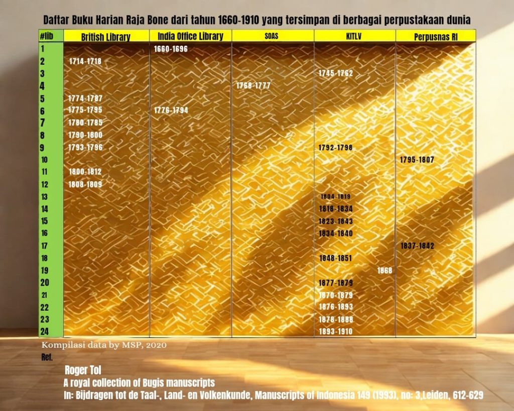 Salah satu program kerja prioritas Perkumpulan Wija Raja La Patau Matanna Tikka (PERWIRA LPMT) adalah menerbitkan Buku Harian Raja-raja Bone dari tahun 1660 sd 1910 yang tersebar di peprustakaan Leiden Belanda, Perpustakaan Nasional Inggris London dan, Perpustakaan Nasional Indonesia Jakarta.